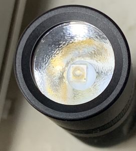 All UV LEDs make some visible light as well as UV light. The visible light distorts the fluorescence colours, so we have to block the visible light from coming out. That is what the filter does, sometimes called a Band Pass Filter. We only sell filtered torches. With the torch turned off, if you can see the LED(s) then there is no filter and the torch is useless for mineral fluorescence. A filtered torch has a black circle at the front end – and that is the filter. See Fig 2,3.
