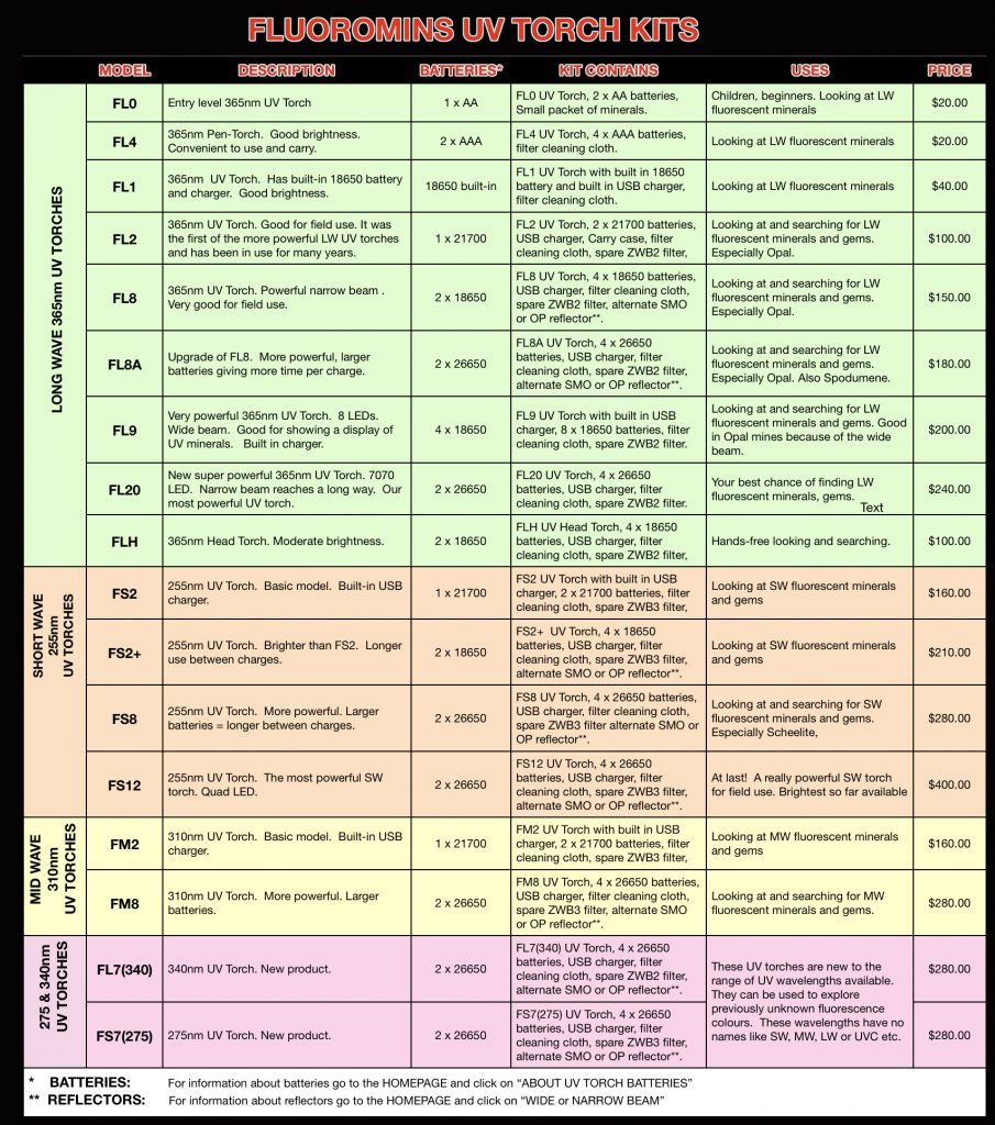 For more details on any torch, click its model name in the table at the bottom of the page.