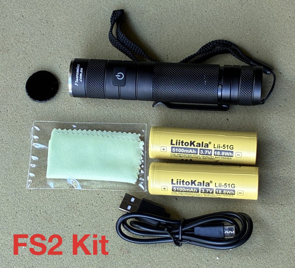 FS2 and FM2 are compact Short or Mid Wave torches. They use one battery, and a spare is provided which doubles the time you can use the torch before recharging. They have an in-built charger so you don’t have to remove the battery to charge. They are good for close up viewing, but are not powerful enough for field work.