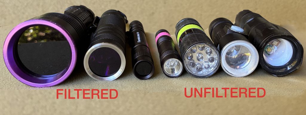 There are numerous types of UV filters. The main ones are Hoya U325C, the ZWB series, Dichroic filters. We (and most other sellers) use the ZWB series. Hoya and Dichroic filters are very expensive and would put our torches out of the reach of many people.